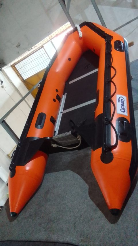 Perahu Karet Ocean 470 Kapasitas 10 Orang Perekatan Hot welding system Automatic Valve di setiap tabung Material Fabric PVC Korea Garansi dan tersedia sparepart dan service center SPECIFICATIONS Type : 470 Overall length : 3.2 m Width : 1.90 m Diameter tubes : 0.5 m CAPACITY Maximum power : 50 HP Passengers : 10 persons