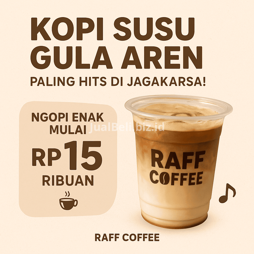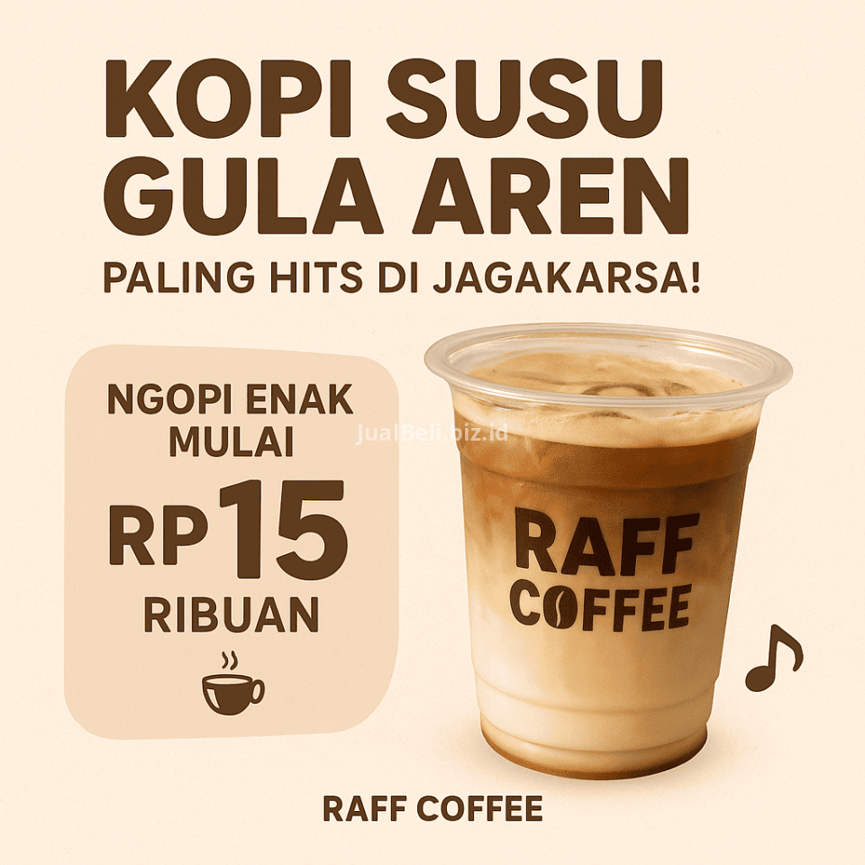 Raff Coffee dikenal karena Kopi Susu Gula Aren-nya yang punya cita rasa pas antara manis dan pahit. Perpaduan antara biji kopi specialty blend arabika-robusta, susu berkualitas, dan gula aren asli membuat setiap tegukan terasa kaya dan lembut di mulut. Dan yang bikin makin menarik — kamu bisa menikmati semua ini mulai dari harga Rp15 ribuan saja!